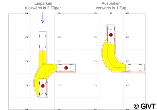 Vorwärts einfahren – Rückwärts ausfahren – Vorwärts wegfahren