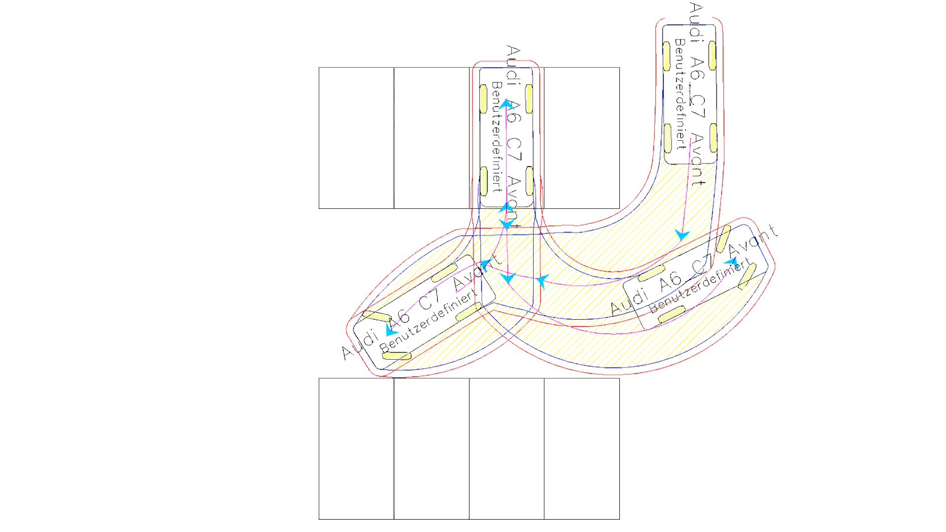 Als Werkzeug zu den FGSV-Schleppkurven nutzen wir neben AutoCAD die Spezialsoftware AutoTURN. Sie ermöglicht es dem CAD-geschulten Fachplaner, Schleppkurven für beliebige Radfahrzeuge in CAD-Pläne einschließlich der einzuhaltenden Sicherheitsabstände einzutragen und so jeden Fall individuell darzustellen.