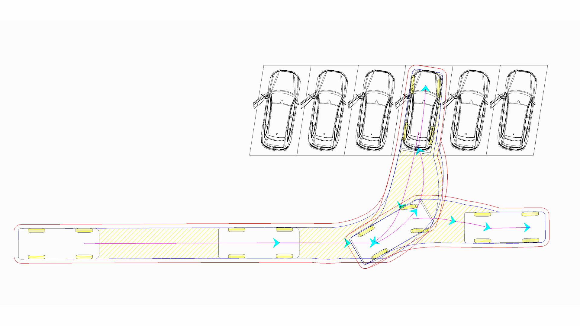 Typische Rangiervorgänge mit ihren wechselnden Lenkeinschlägen und Fahrtrichtungen lassen sich nur mit entsprechender dynamischer Schleppkurven-Software simulieren und visualisieren!