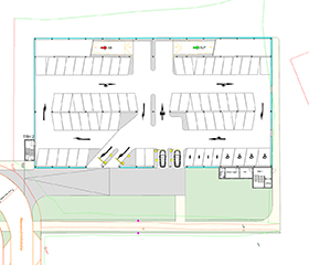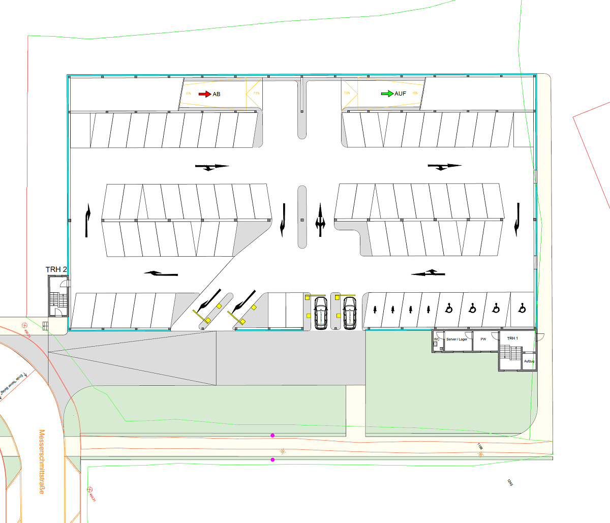 Planung des Parkhauses Salzburger Leite in Bad Neustadt / Saale mit 81°-Schrägaufstellung im Auftrag vom Architekturbüro Kriesche (2016 - 2019)